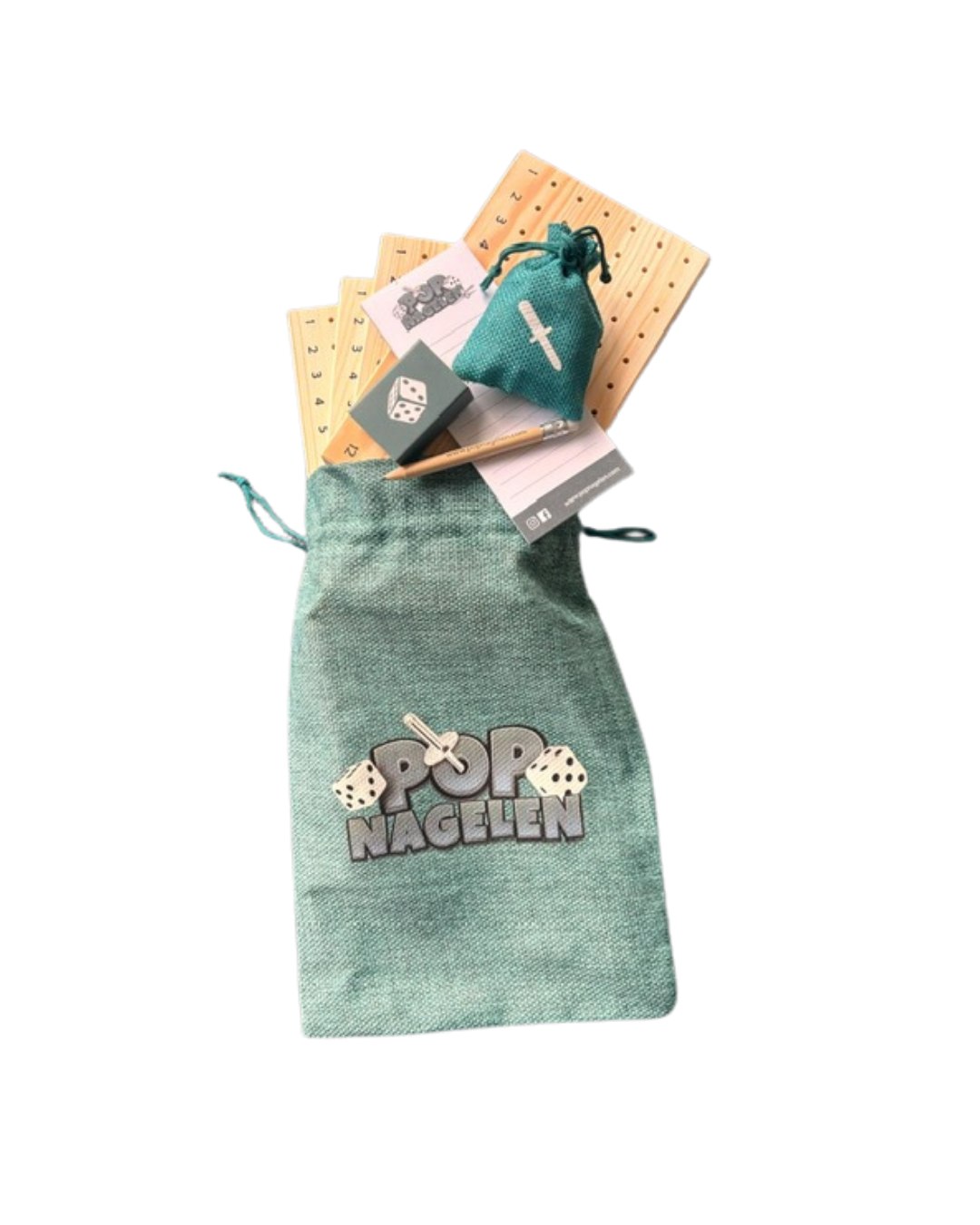 Deze stijlvolle travel bag is geschikt voor alle versies van Popnagelen. Lichtgewicht, ruimtebesparend en ontworpen om je spel extra compact mee te nemen. Ideaal voor in je koffer, rugzak of handbagage. Alles netjes bij elkaar, klaar voor dobbelplezier onderweg!